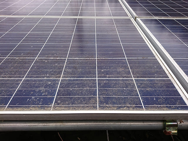 パネルは1年経つとこんなに汚れがついてしまい発電を阻害してしまいます