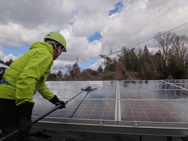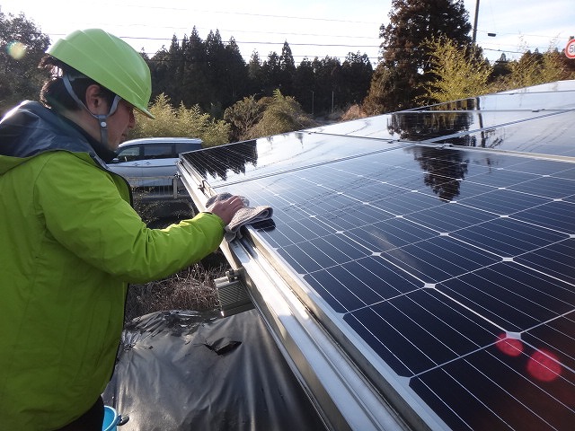 パネル洗浄以外に雑草等の影になるものの除去やシート捲れ直し等発電所所有者が一番気になる不具合があれば30分程度サービスで処置を行います。